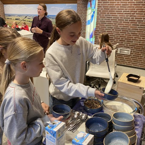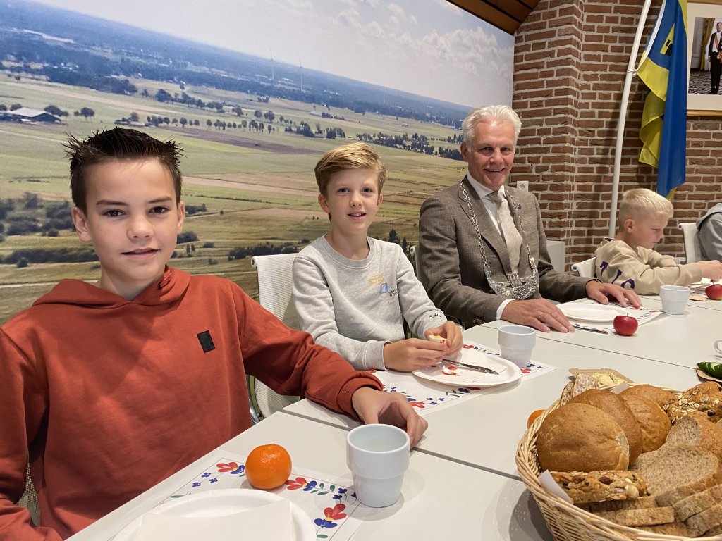 Samen met locoburgemeester Lucas Mulder, bakker Harry Ubak van bakkerij Ubak en Klaasje Spiker van Melkveebedrijf Spiker. Deze twee bedrijven namen voor het ontbijt ook hun producten mee. Het zogeheten Burgemeestersontbijt is een jaarlijkse actie van het Nationaal Schoolontbijt.