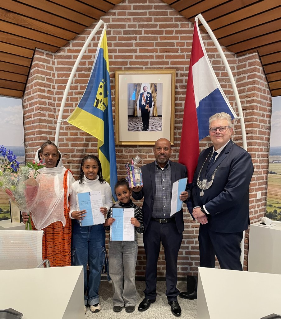 Op 20 april is tijdens een naturalisatieceremonie in het gemeentehuis aan drie inwoners van de gemeente Staphorst het Nederlanderschap verleend. Tijdens de ceremonie legde meneer ten overstaan van burgemeester Ten Kate de verklaring van verbondenheid af, waarna officieel het Nederlanderschap voor hem en zijn 2 dochters is verkregen. Mevrouw viert dit natuurlijk mee maar is nog niet lang genoeg in Nederland om te naturaliseren.