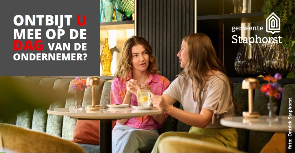 Op de ‘Dag van de ondernemer’, op vrijdag 21 november, organiseert de gemeente voor de tweede keer een ondernemersontbijt. Alle ondernemers in de gemeente Staphorst zijn van harte welkom om zich hiervoor aan te melden via c.zondag@staphorst.nl.